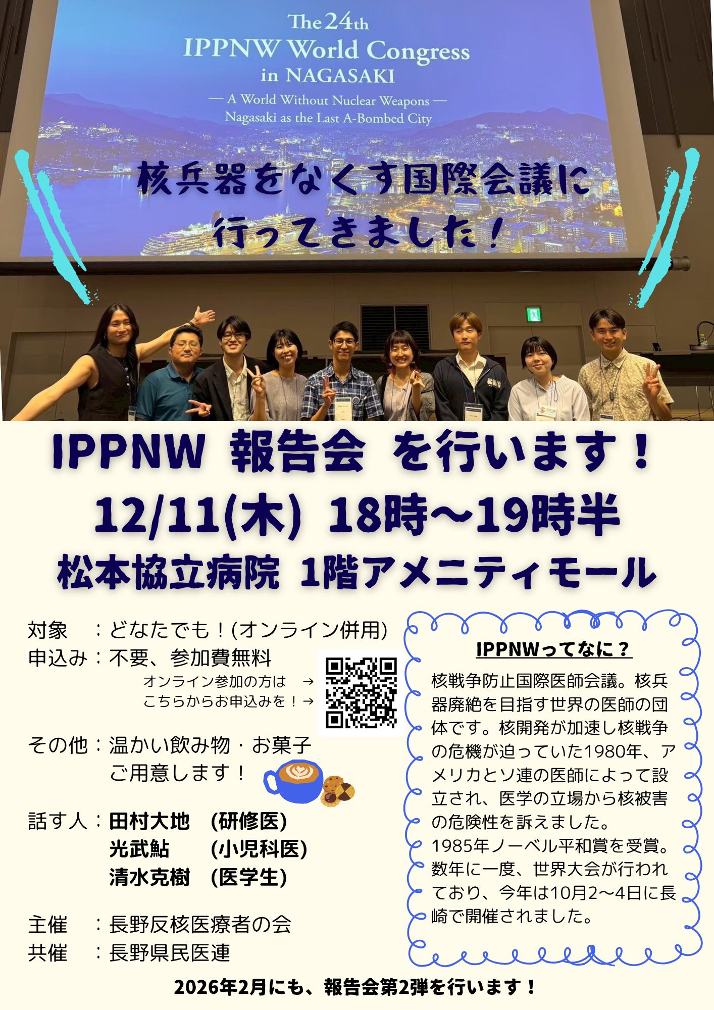 核兵器をなくす国際会議に行ってきました!IPPNW in 長崎 報告会 12/11 松本