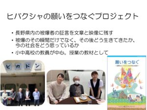 1月12日、東京都内の会場にてオンライン併用で非核の政府を求める会 新春シンポジウムが開催されました。長野反核医療者の会より河野絵理子がパネリストとして登壇。「核なき世界を求めて、被爆者医療の継承と若造フォーラムの実践」と題して、これまでの取り組みや、継承について、医療者としてどう向き合うかなど、報告を行いました。